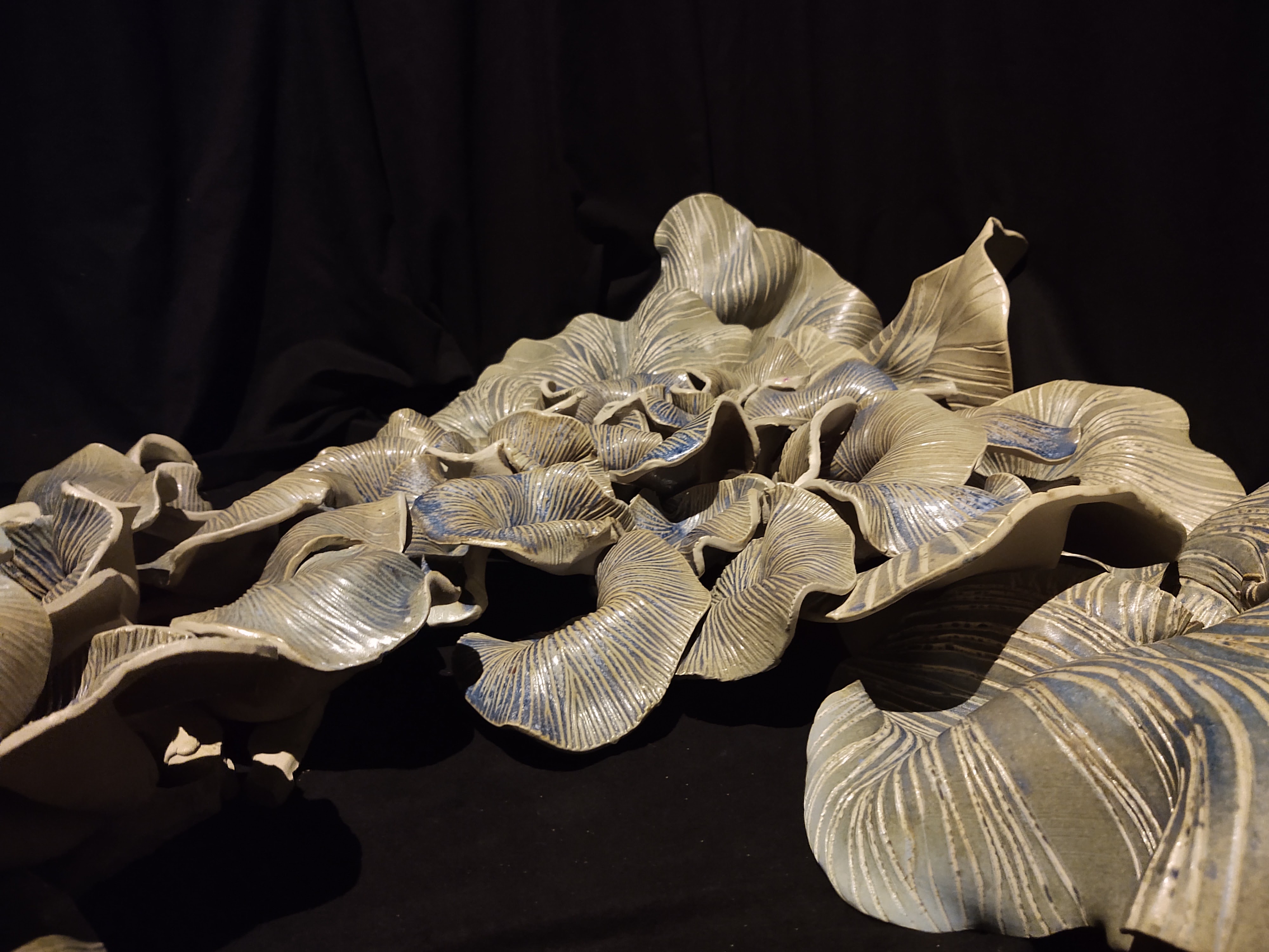 This piece was part exhibition Anthropause, part of this year’s Craft Week 2022. It was initiated by Lisa Fält and Tilda Dalunde, and is a collaboration with and between fellow craft artists Fernanda Melgarejo, Minna Rombo Zetterlund, Anna-Klara Samuelsson and Anna Lo Bergmark. The group works in the expanded field of craft with several different techniques and materials such as ceramics, hair, glass, textiles, and tin.